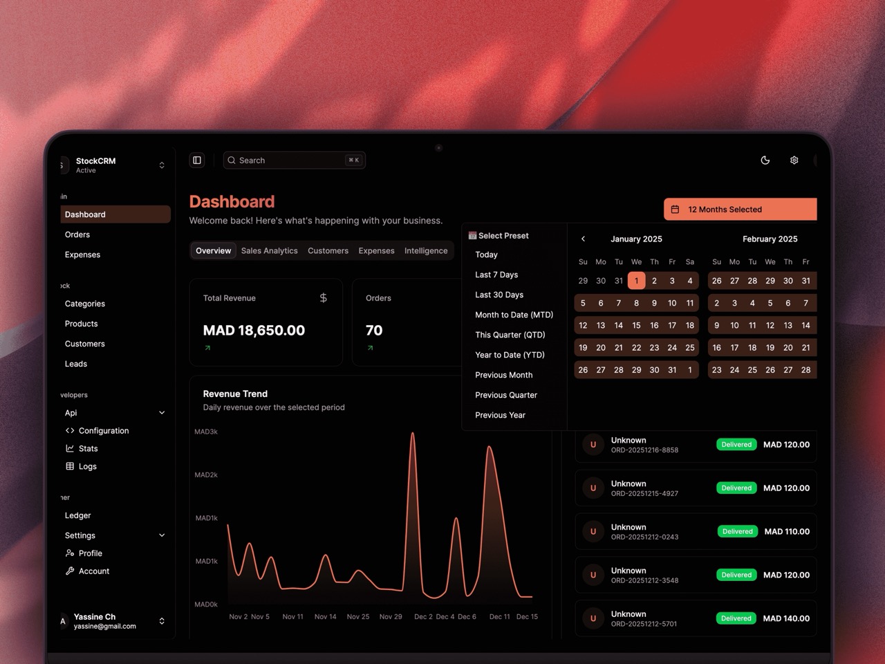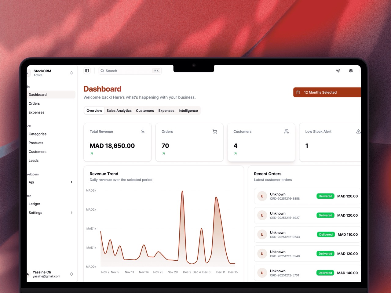 StockCRM is a modern CRM and stock management SaaS I built to help businesses manage clients, inventory, and operations from a single dashboard. It features real-time stock tracking, secure JWT-based authentication, and a fast, responsive UI. Designed for scalability, performance, and everyday business workflows.